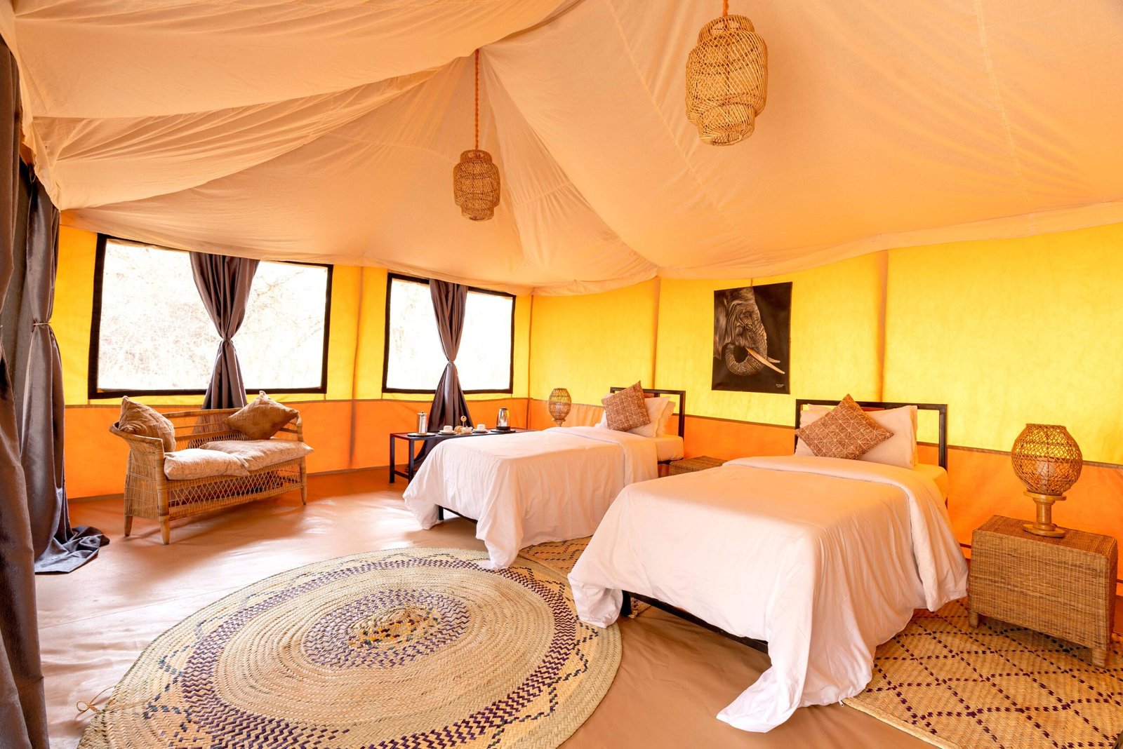 Spacious and beautifully decorated safari tents blending comfort with wilderness.